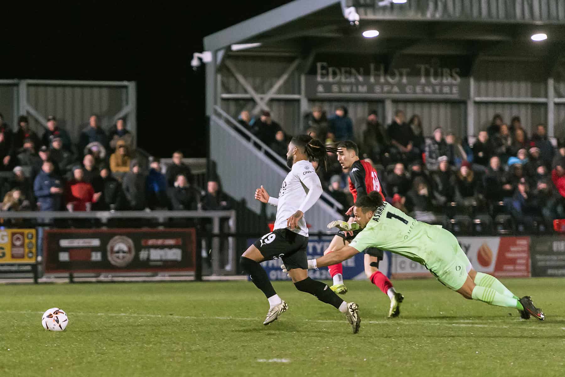 The second period started with the hosts in the ascendancy, and Tyler Harvey and Riley-Lowe both went close a few minutes after the restart, with Ashmore coming to Boreham Wood’s rescue both times. Riley-Lowe also hit the side netting during this period. On 63 minutes, Josh Hare crossed the ball in for Appiah, who headed into the path of Rush, but he missed from close range. Wood were made to pay for that miss a minute later when Luke Jephcott scored with a really impressive finish into the corner of Ashmore’s goal.