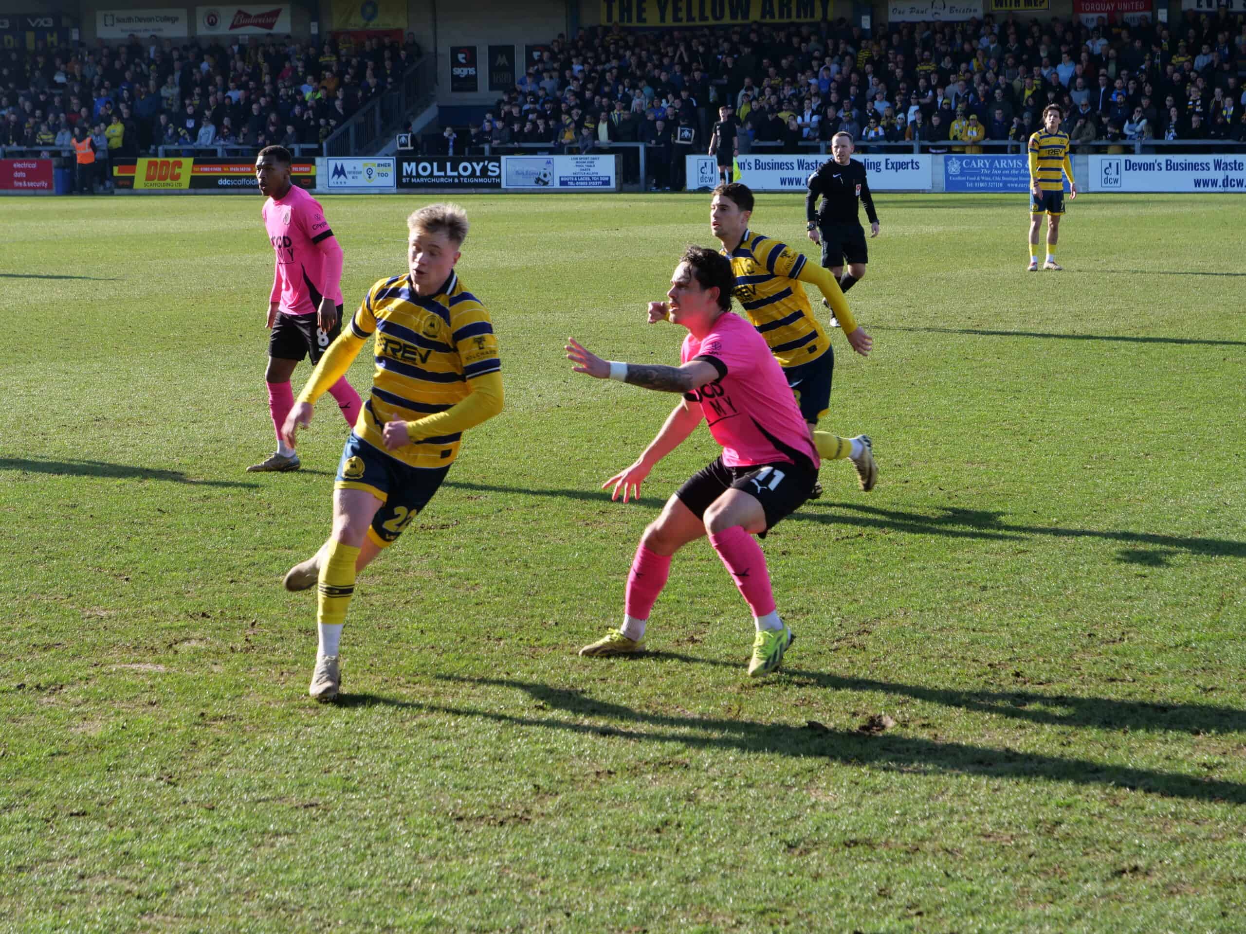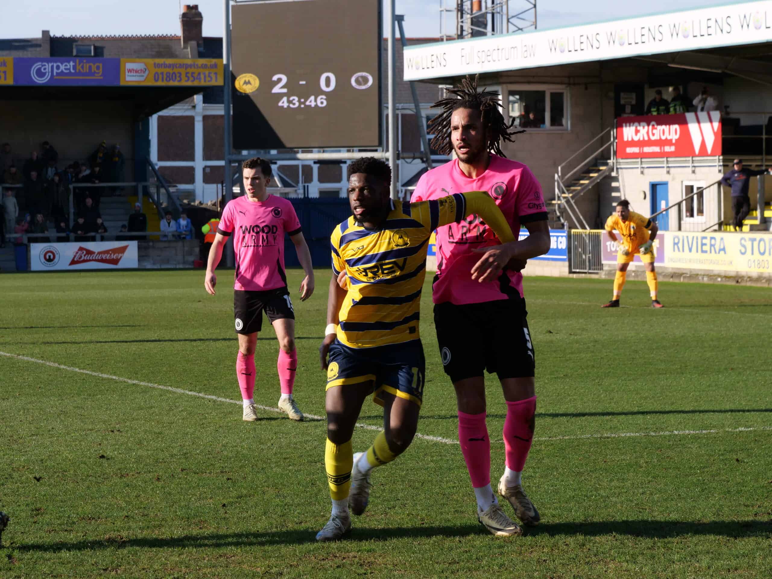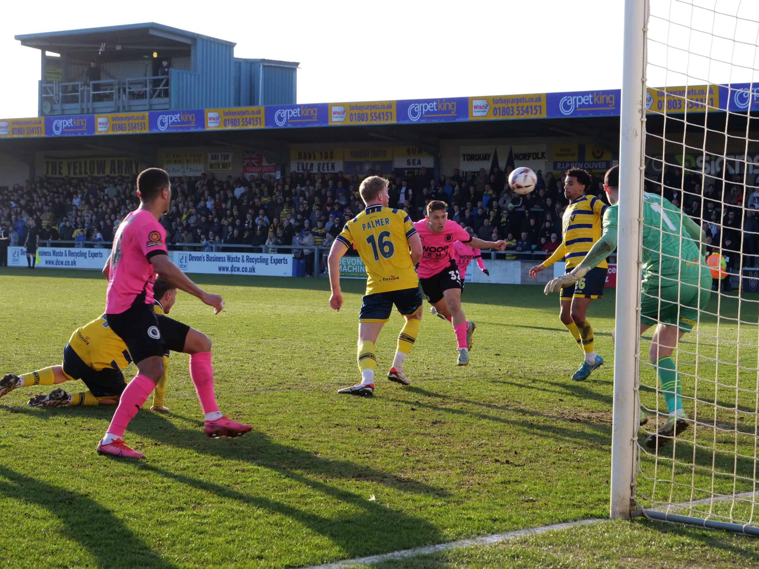 During the seven minutes of added time, Wood forced a succession of corners, and the Gulls’ defence seemed to keep them at bay. Just as the referee was looking at his watch, Abdulmalik went on a jinking run that turned the Torquay defence inside out before crossing for Dixon to fire home. The scenes of jubilation among players and supporters were incredible.