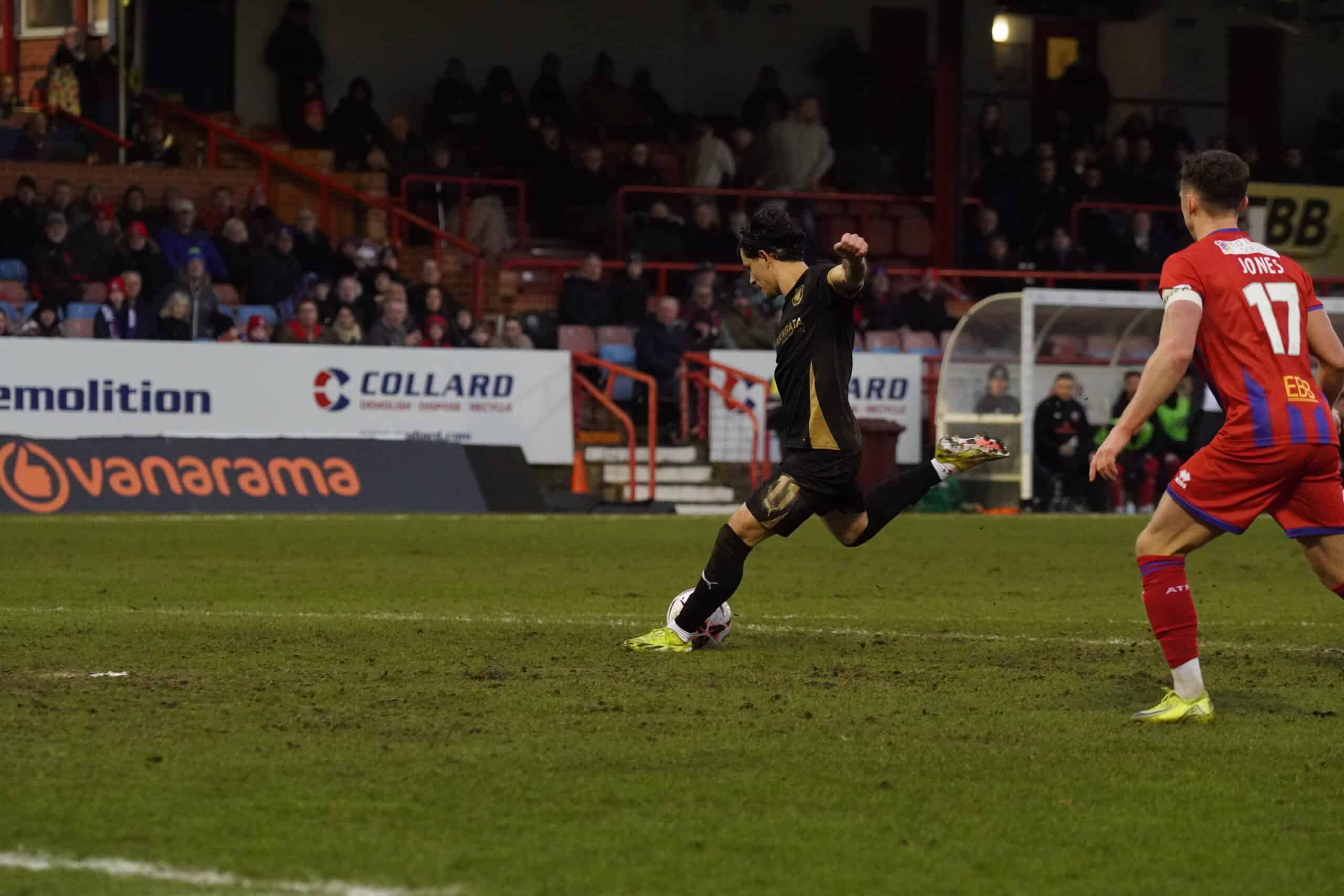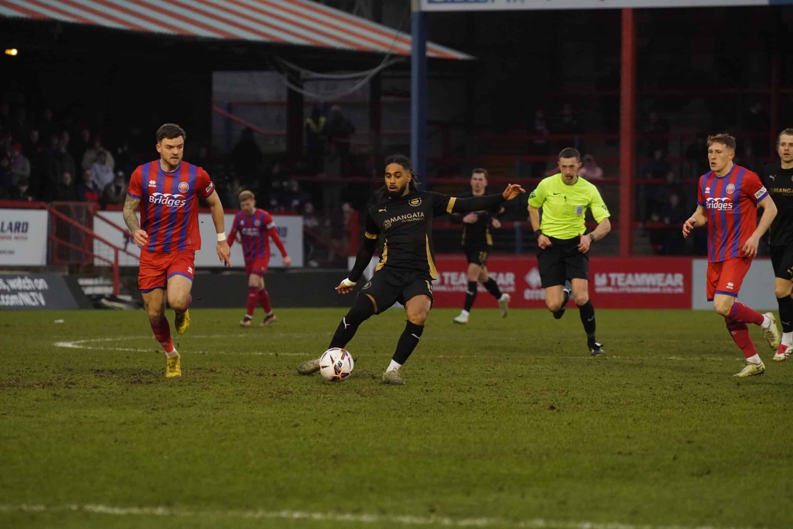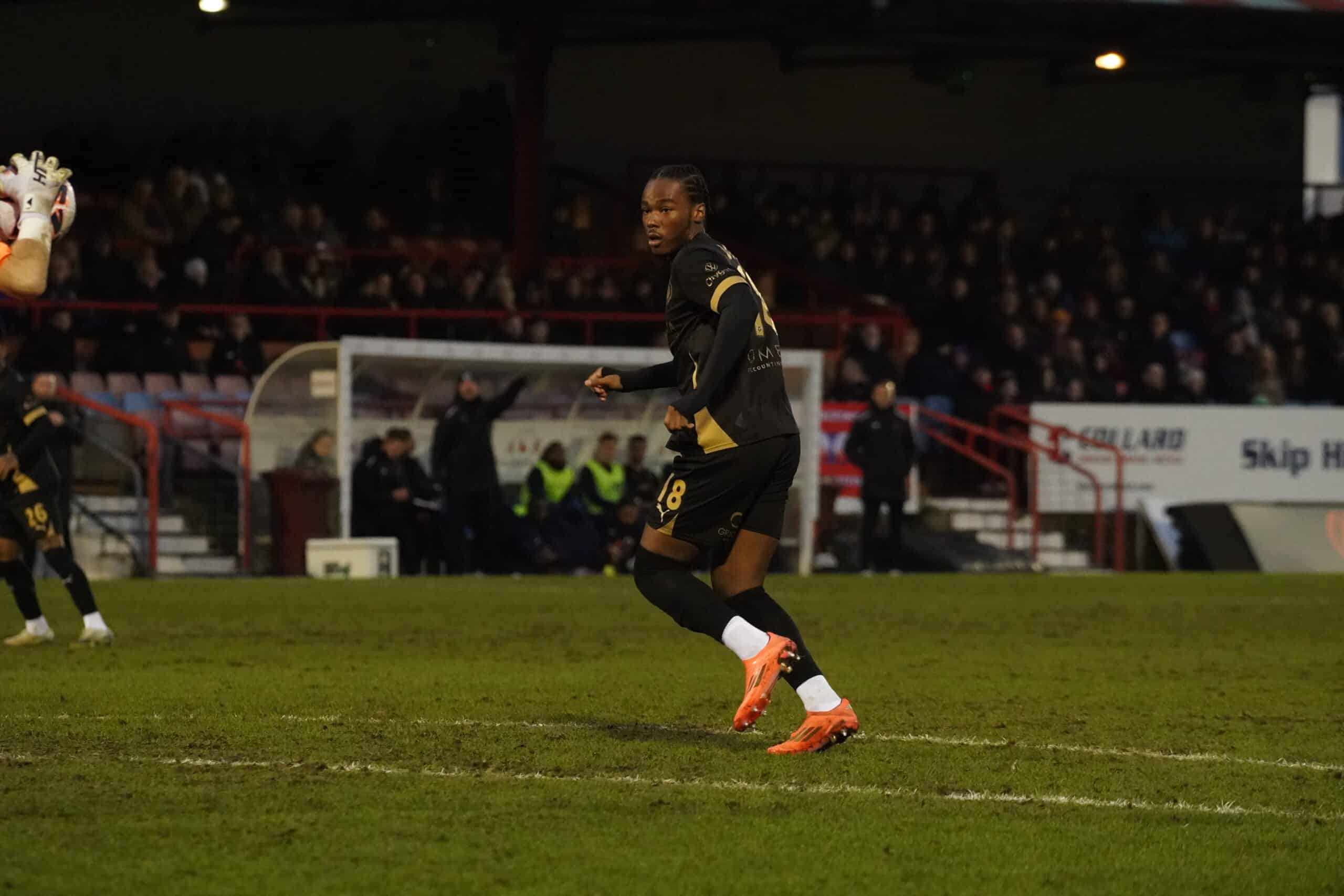 The hosts started quickly and forced an early corner from which Luca Woodhouse headed just wide. Almost immediately, Charlie O’Connell was also off target with a header from another corner. On nine minutes, a cross from Job Benton was very close to being tapped home by Matt Rush, but his weak shot was easily gathered by Shots keeper Marcus Dewhurst. The hosts had a great chance to take the lead four minutes later when Tyler Frost cut inside and fired just wide, with Nathan Ashmore beaten. On 17 minutes, Aaron Jones fired straight at Ashmore for the Shots. Two minutes later, an excellent run and cross from Jones found Jack Barham, who volleyed over the bar.