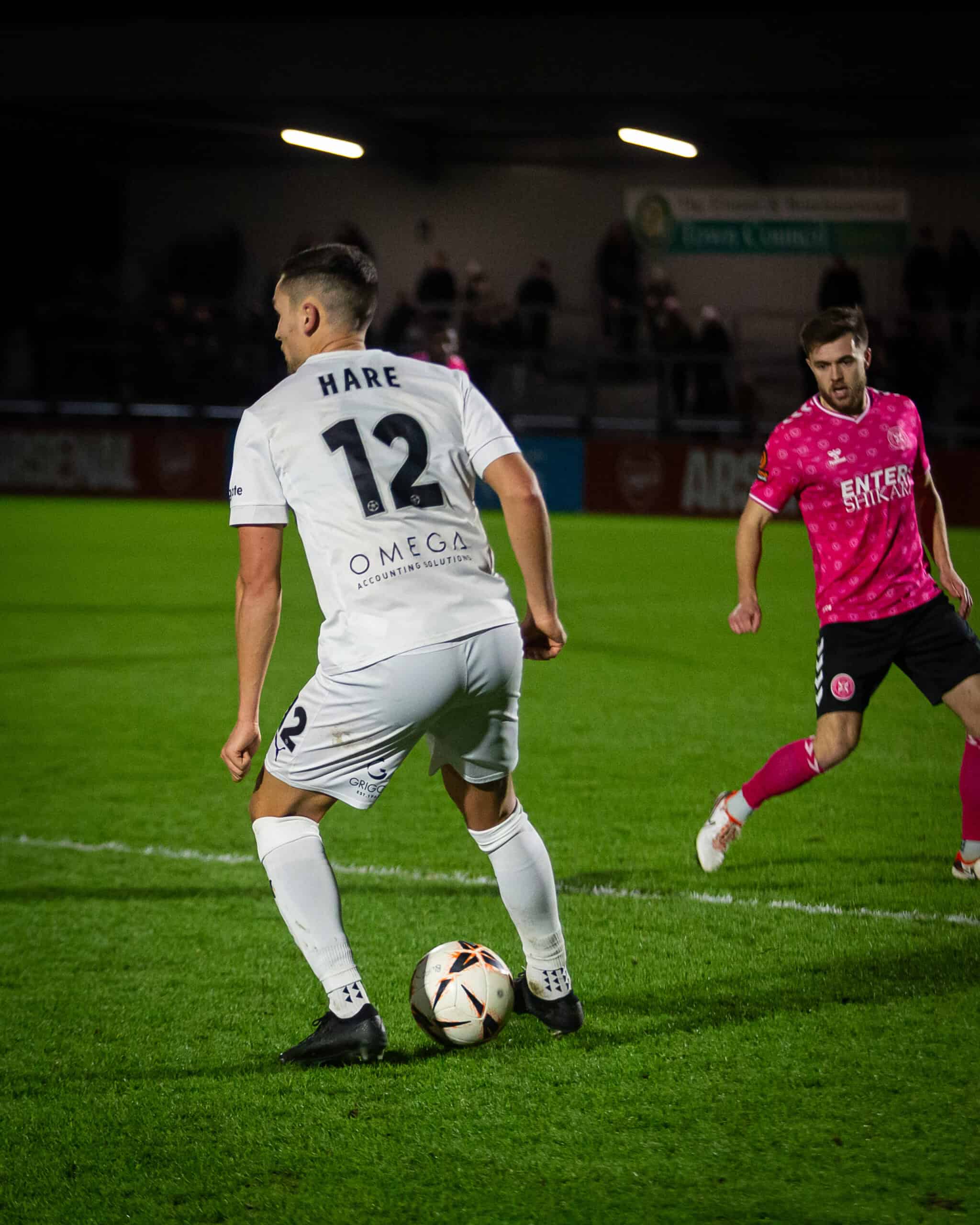 Boreham Wood controlled the early exchanges and laid siege to the visitors’ goal, but a resilient Saints defence matched Wood’s attackers. Job Benton had the first shot of the match on eight minutes but fired well over the bar. The visitors soon began to get into the game and forced a series of corners. On 19 minutes, Shaun Jeffers forced Nathan Ashmore into a good reaction save after being played in by Giorgio Rasulo.