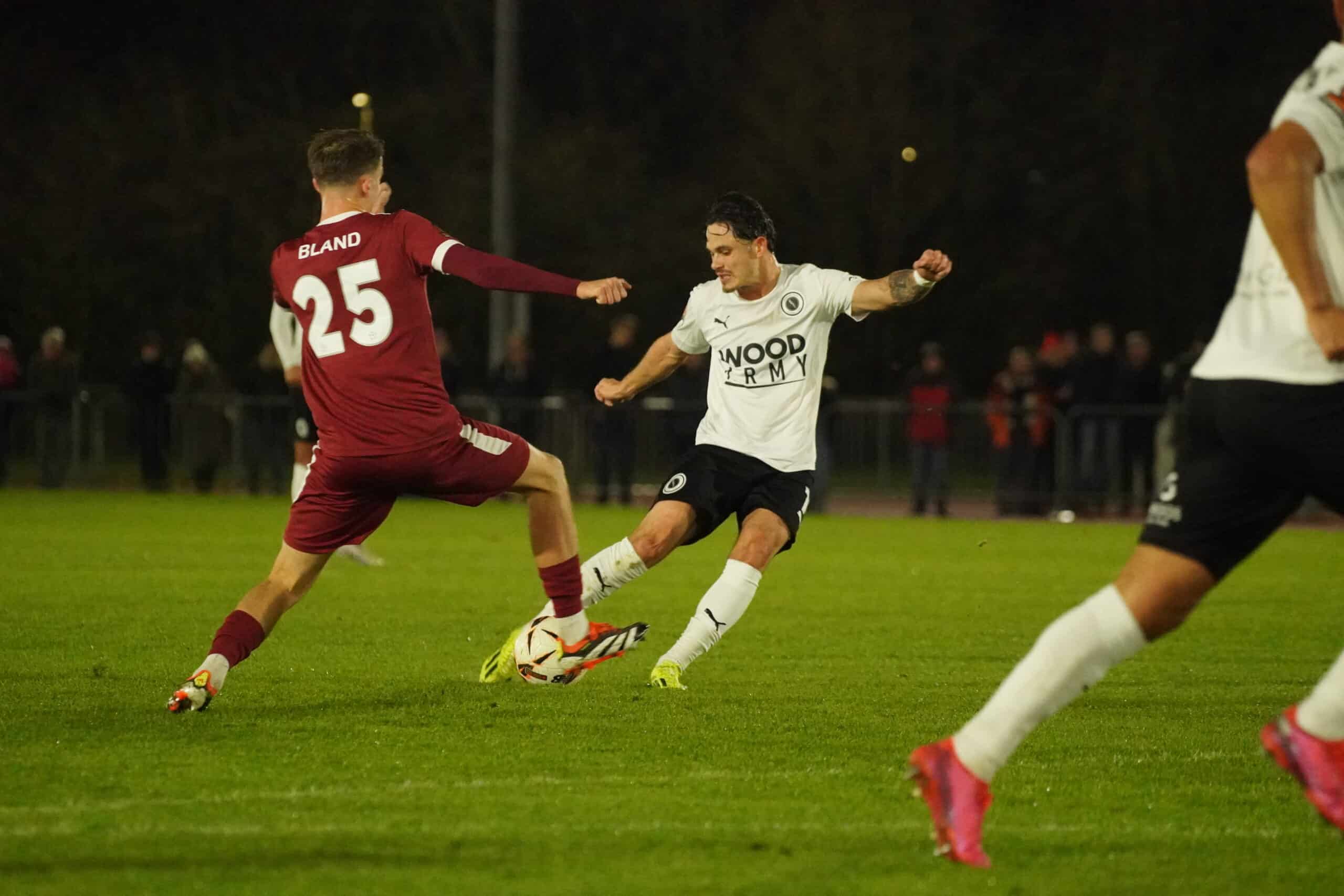 After a barrage of pressure from the hosts, Wood finally got going again just before halftime. On 42 minutes, Richardson had a shot saved by Clarets keeper Woody Williamson. From the resulting corner, the Chelmsford stopper pulled off an incredible save to deny Bush, whose header looked destined for the corner.