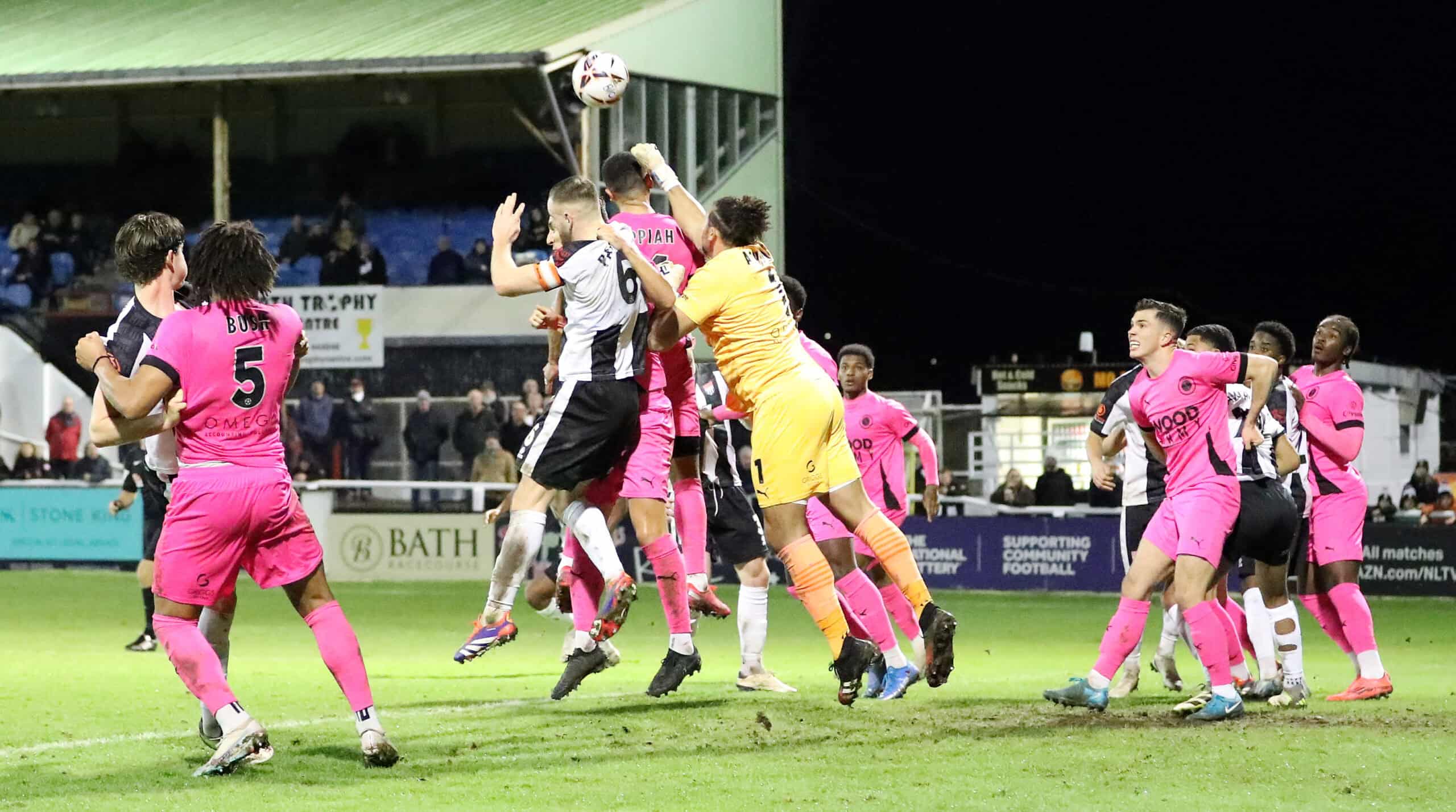 A lack of concentration at the back for Boreham Wood nearly led to a Bath equaliser on 22 minutes when a Dan Greenslade pass picked out Luke Russe, who chipped Nathan Ashmore, but it went just wide. This was the catalyst for a good spell by the hosts, who then forced a succession of corners before Ashmore pulled off an excellent save from a deflected Ben Seymour shot on 28 minutes. Two minutes later, the Romans got their equaliser from a fiercely struck free kick by Jordan Alves.