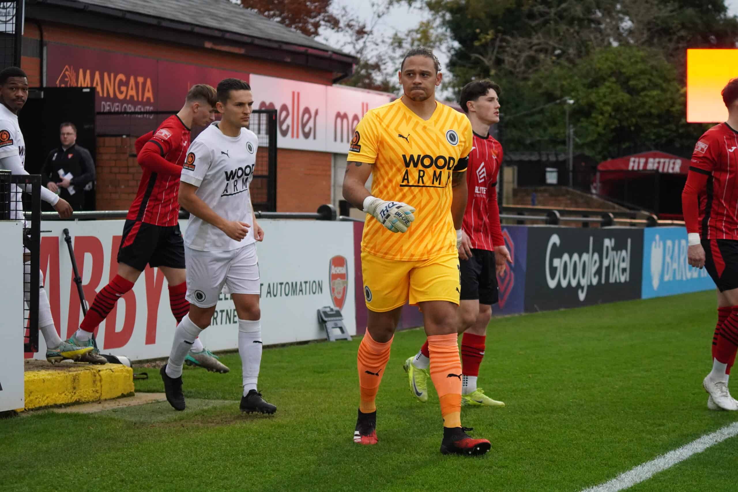 Wood came straight out of the blocks, and new boy Jon Benton played in Jayden Richardson, who fired just wide on four minutes. A minute later, Seasiders forward Joshua Mayhew had a shot deflected into the arms of Nathan Ashmore in the Wood goal. Shortly afterwards, Willie Clemons shot straight at Josh Hare for the visitors. Felixstowe were able to nullify Boreham Wood’s attacks and started to threaten the Wood goal. The Seasiders took the lead on 16 minutes when a corner was put in at the far post by Joshua Hitter, with the Wood defence ball-watching.
