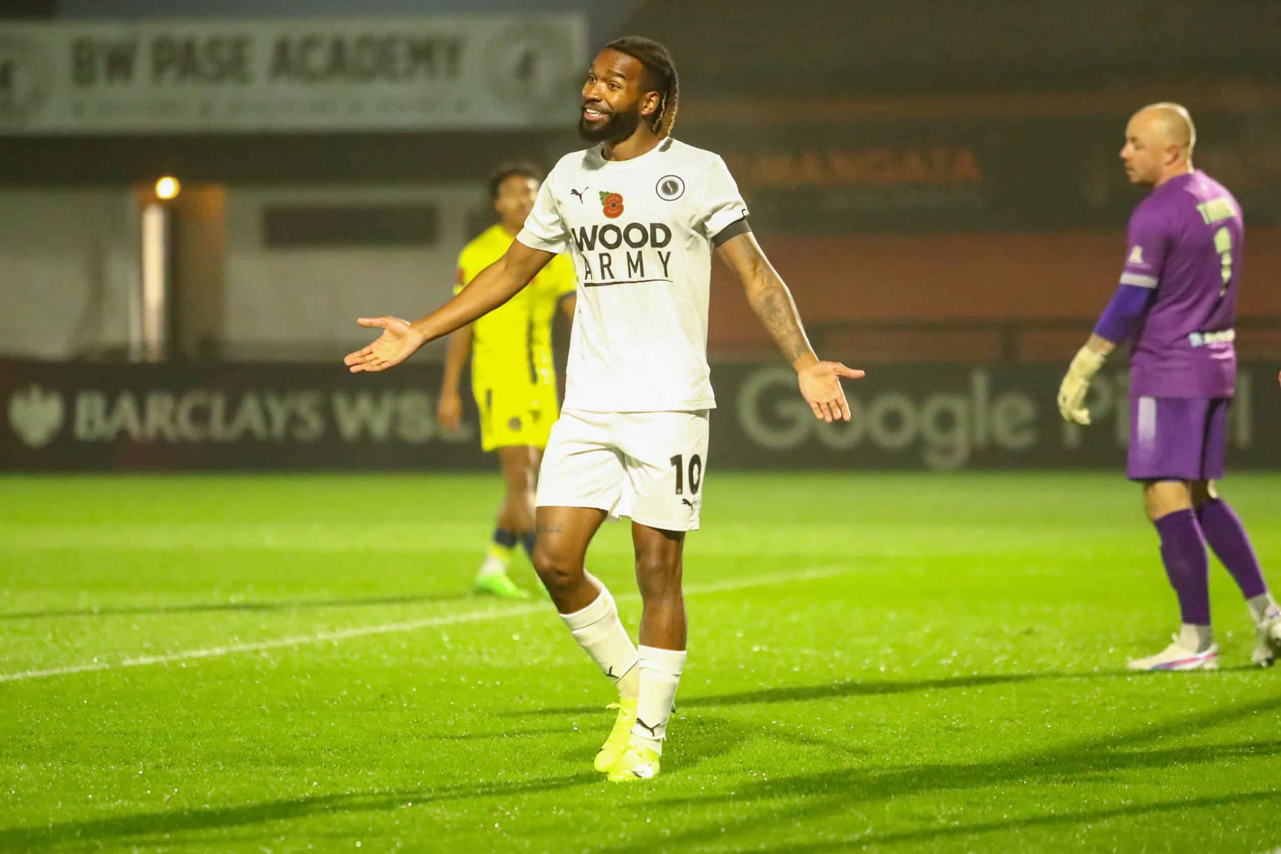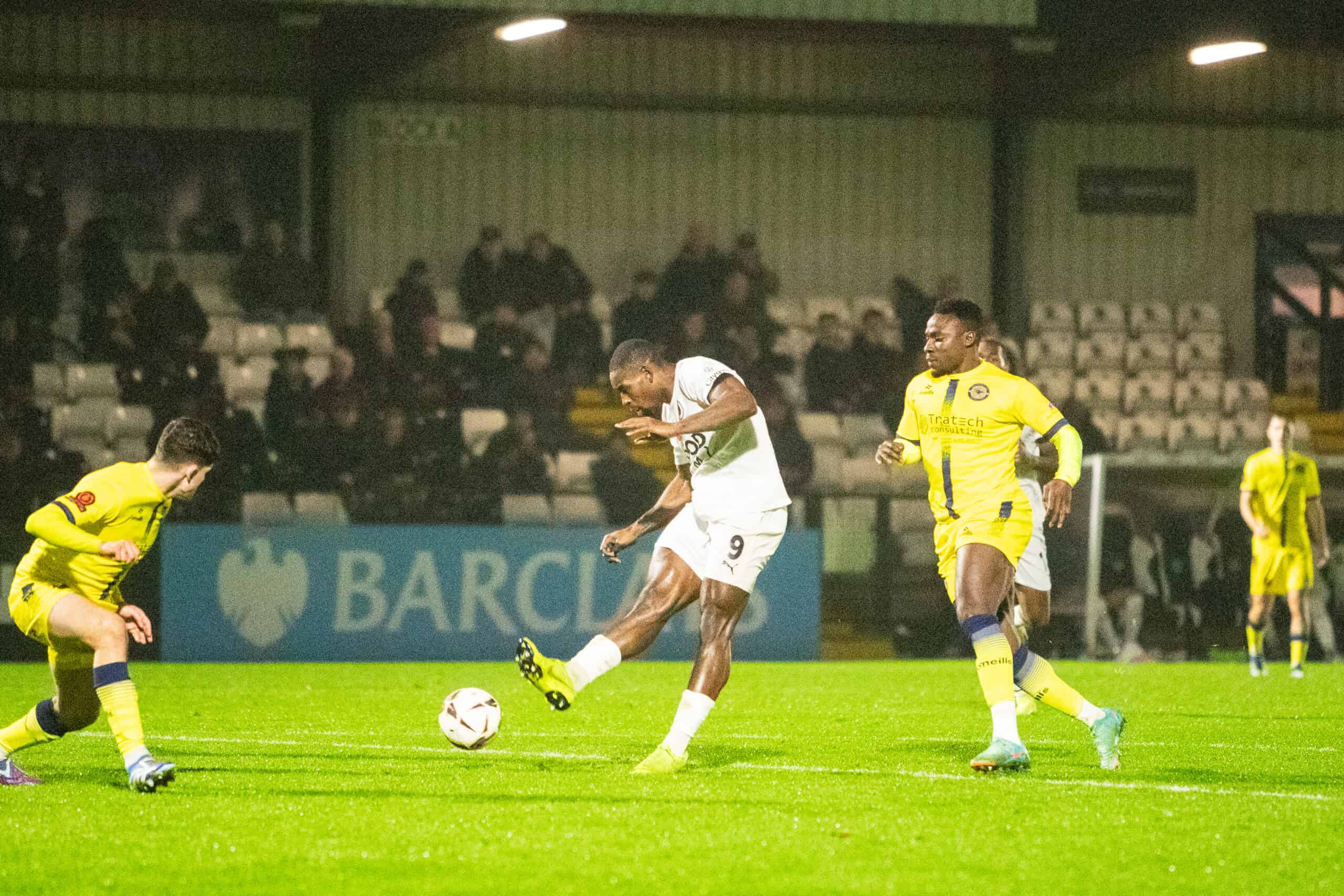 It was an entertaining first half with plenty of goalmouth action. Tyrone Marsh fired wide for Boreham Wood after just two minutes, having dispossessed Farnborough’s Taylor Clark. Wood opened the scoring on eight minutes when a Lee Ndlovu cross was turned into his own goal by Clark. Wood doubled their lead eight minutes later when Junior Dixon’s shot took a slight deflection past Jack Turner in the Boro goal. The visitors pulled a goal back on 19 minutes when Richard Chin dispossessed Jayden Richardson down the left-hand side before cutting in and unleashing a fierce shot past Nathan Ashmore.